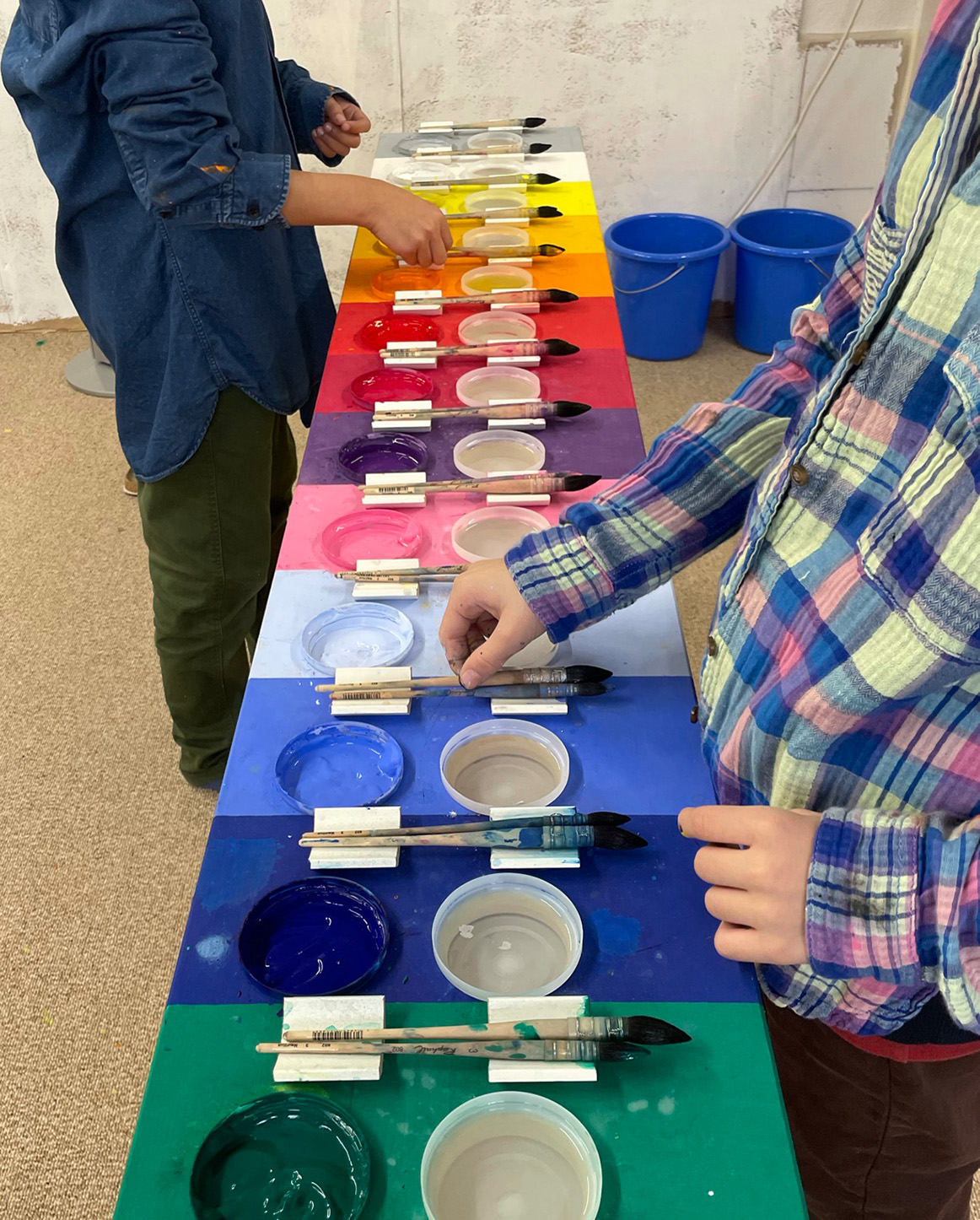 Ablauf in jedem Modul: Ankommen und Einstimmen mit Körperwahrnehmungs-übung, intuitives Malen (mit Pinsel, Spachtel oder Händen), Inputs aus der Gewaltfreien Kommunikation, Reflexion, Abschluss und Integration.